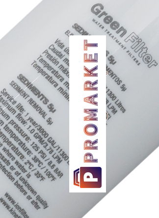 Green Filter CS Sediment 291803 filtro acqua da 5 micron. Dimensioni: 2.5 x 11. Portata massima: 1 GPM. Pressione massima: 8,6 Bar. Temperatura massima: 38°F. Durata: 11.000 L / 1 anno. Grado di filtrazione: 5 micron (5µm). Connessioni, adattatori e raccordi non inclusi e da ordinare separatamente.